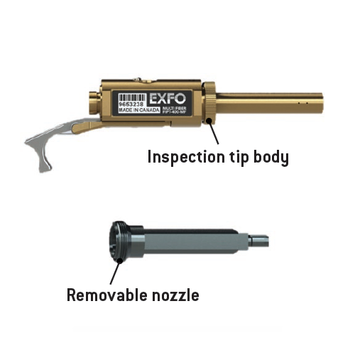 Die Mikroskopspitze FIPT-400-MF ist mit ein- und zweireihigen Multifaser-Steckverbindern unabhängig vom Steckertyp kompatibel. Dank eines abnehmbaren Aufsatzes lässt sich die Lösung einfach und schnell an verschiedene Mehrfaser-Steckermodelle anpassen:
