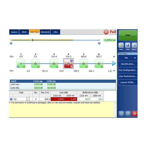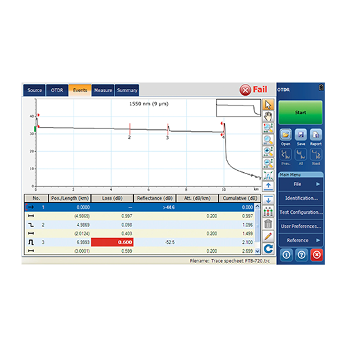 - Exakte Fehlerlokalisierung auf kurzen Strecken: Dank optimierter Multimode-Performance erkennt das FTBx-720D selbst kleinste Unregelmäßigkeiten wie Faserbrüche oder fehlerhafte Steckverbinder.