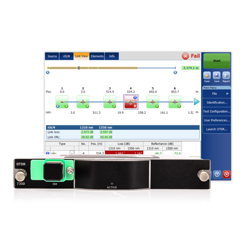 Das FTBx-730D bietet eine High-End-Konnektivität, die einen reibungslosen Datenaustausch während des Serviceeinsatzes gewährleistet. Durch die Kombination mit der OTDR-basierten Anwendung iOLM ist eine vollautomatische Netzwerkcharakterisierung möglich.
