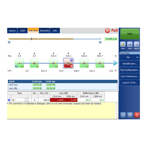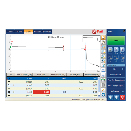 - Hohe Auflösung: Präzise Lokalisierung von Problemen in der Nähe von Splittern dank der höchsten Auflösung für PON-Tests und der geringsten PON-Totzone.