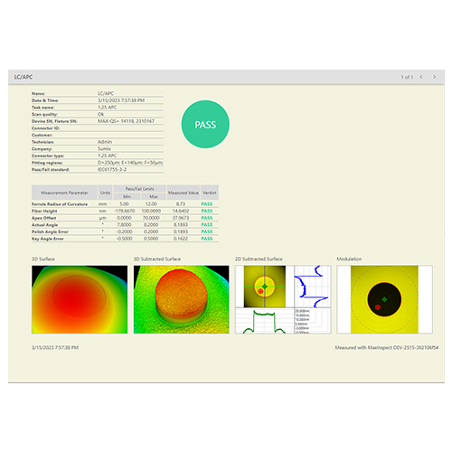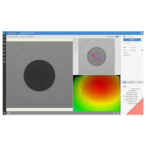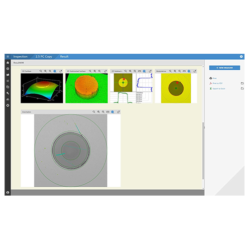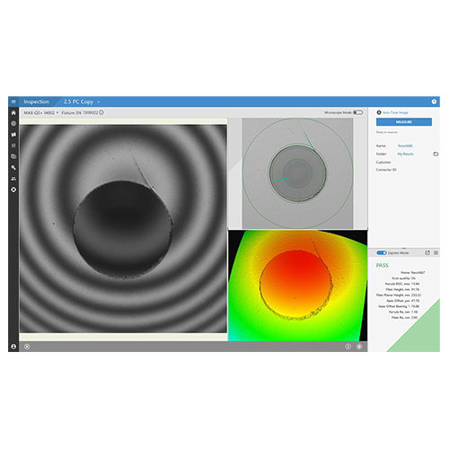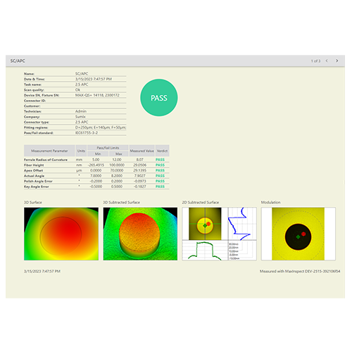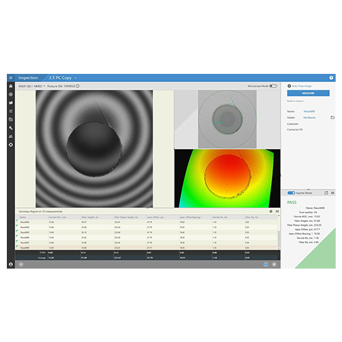 Der MAX-QS-H liefert hochauflösende 2D- und 3D-Oberflächenprofile mit einer Auflösung von bis zu 1,1 µm. Der integrierte Autofokus reduziert den Bedienaufwand auf ein Minimum und ermöglicht Messungen eines einzelnen Steckverbinders in unter zwei Sekunden. Neben der automatischen Erkennung von Oberflächenanomalien unterstützt das System umfassende Geometrieprüfungen, wie die Messung von Krümmungsradius, Apex-Versatz und Faserhöhe. Ein zusätzlicher Mikroskopiemodus erlaubt die visuelle Vorabkontrolle der Endfläche.