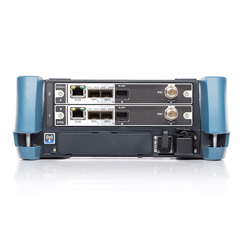 Die NetBlazer FTB-870v2 / 880v2 ist die mobile Lösung für Servicetechniker und deckt alles in 10G ab. Das Modul ist voll ausgestattet für Ethernet-Tests durch iSAM und RFC 6349, mit GigE und 10GigE-Dual-Ports, OTN, SONET/SDH, DSn/PDH, ISDN PRI, FTTA, Faserkanal und Paketsynchronisierung.